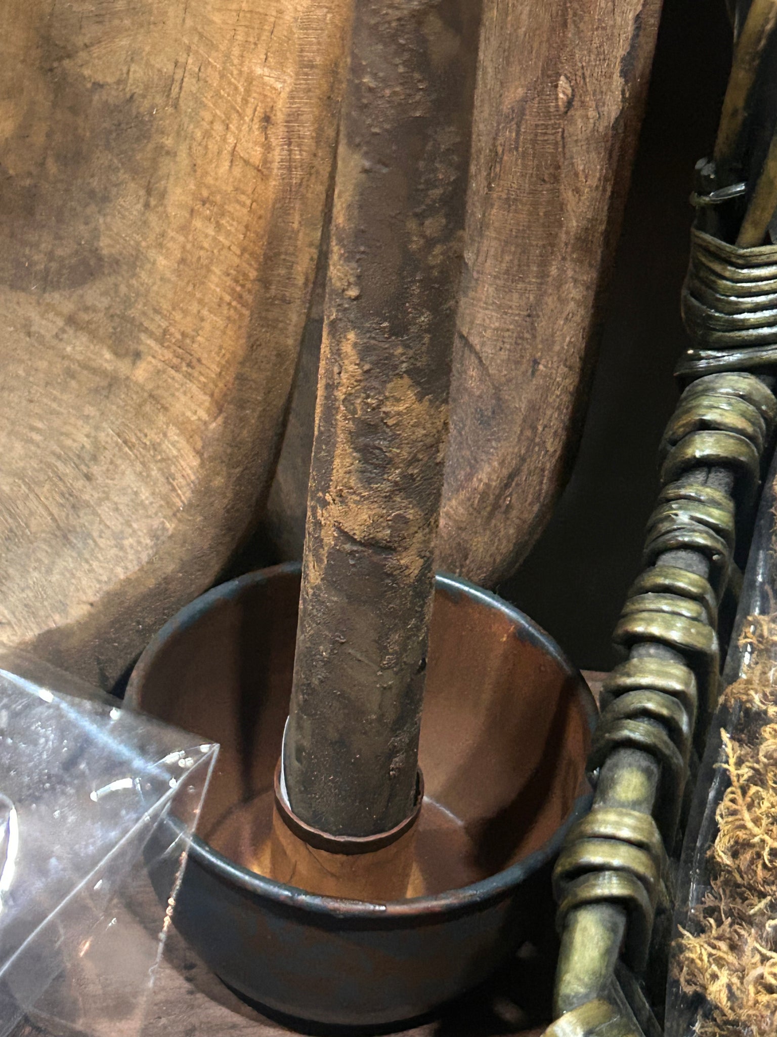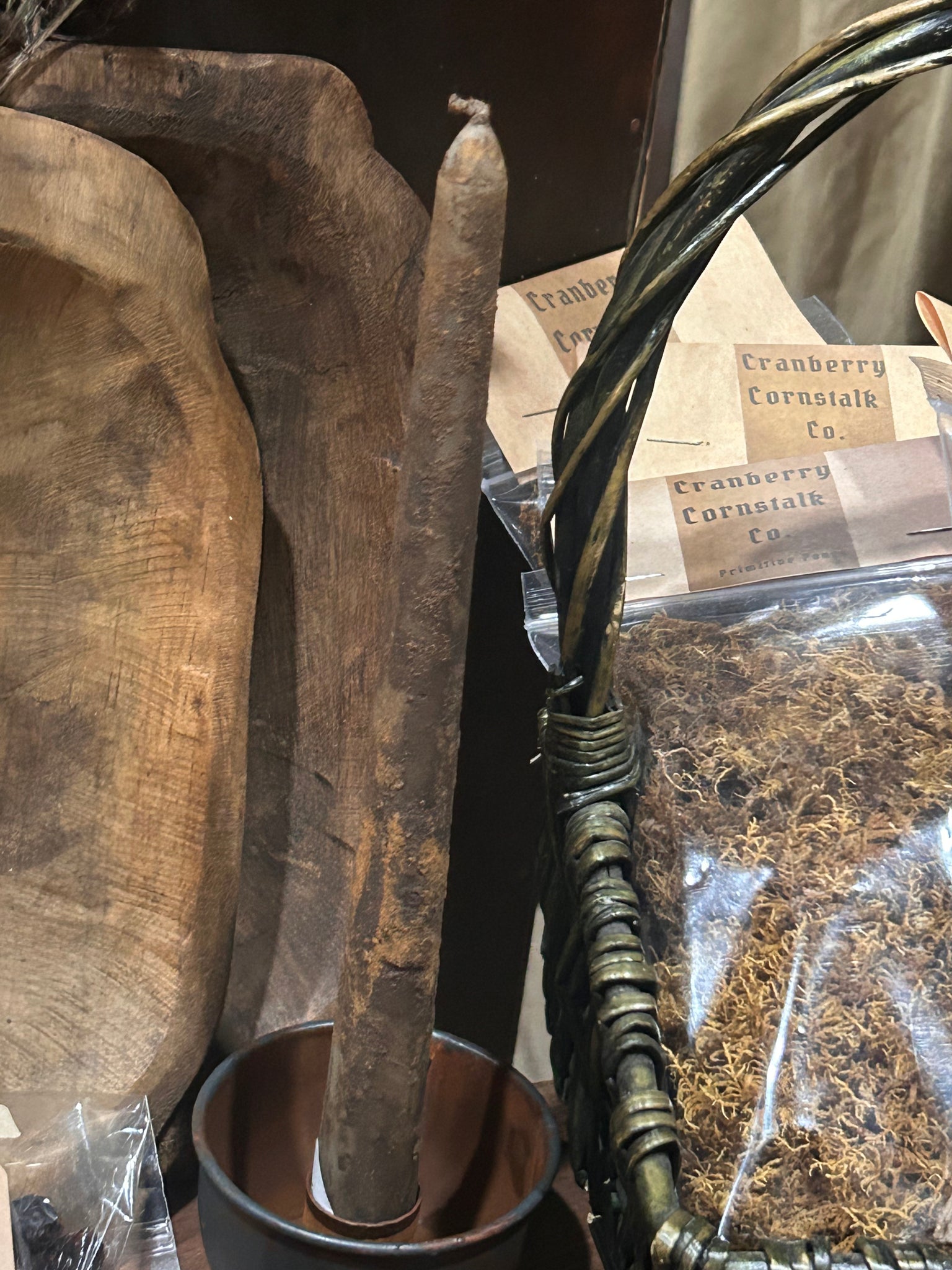 This sweet little candle cup is primitive and rusty. Just a small little holder to tuck some light from a candle into any little grouping. Wrap some pine for Christmas or fill the cup with little red berries for Valentines day. Candle sold separately. 3 inches wide and 2.5 inches tall.